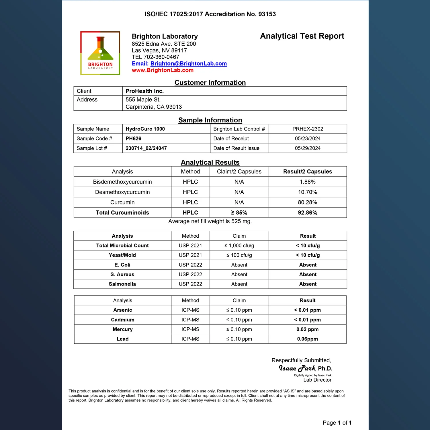 - Bioavailability. Compared to other brands of curcumin, ProHealth’s HydroCurc® is proven to highly bioavailable.